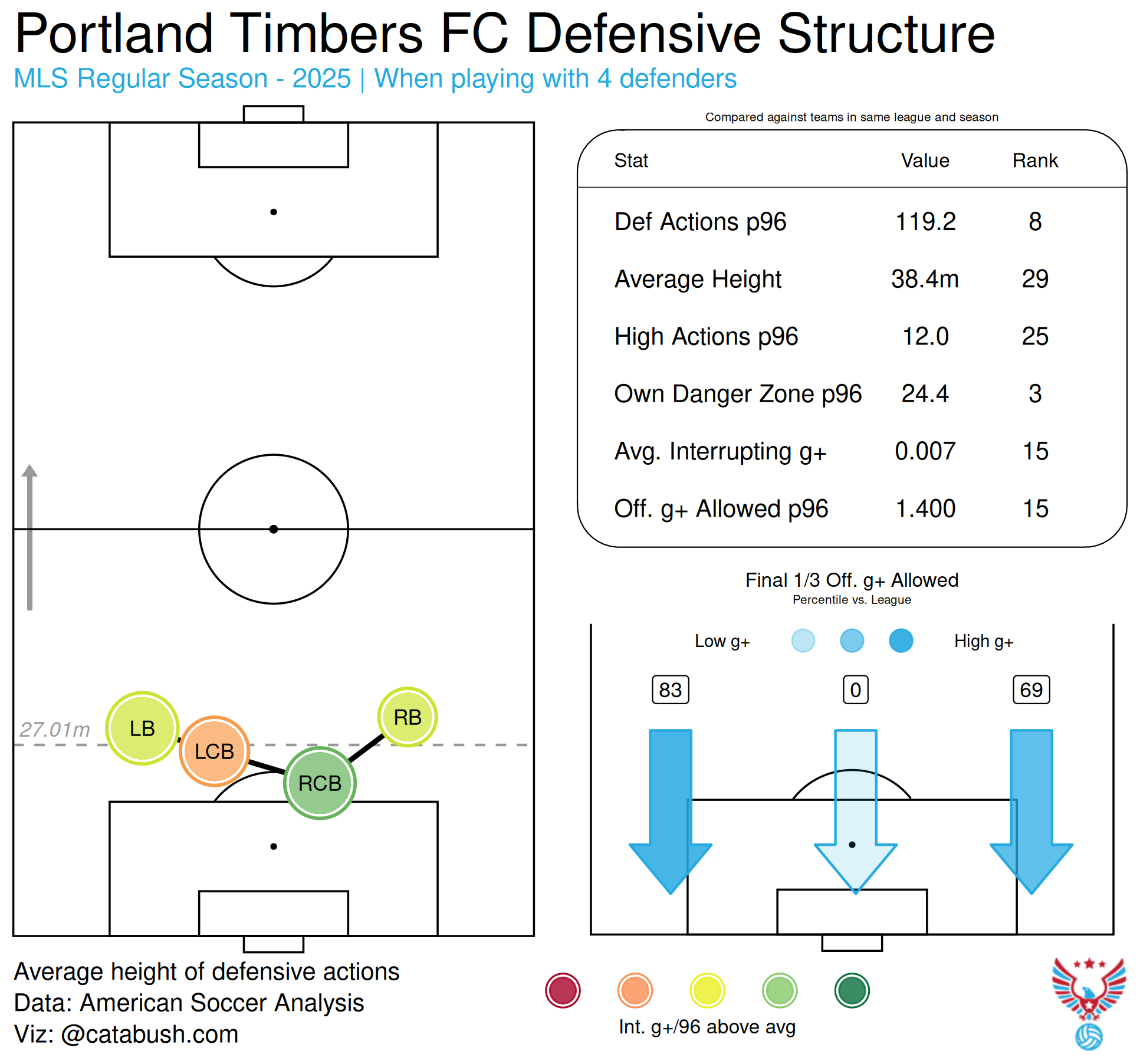 Portland’s 2026 defense conceded 47 goals off 55.8 xG, a respectable improvement from 2024. According to Futi’s Team Tendencies app, Portland did not commit to a defensive system. Therefore, this impressive defensive performance is upheld by maximal individual performers, headlined by the departed defensive midfielder David Ayala.