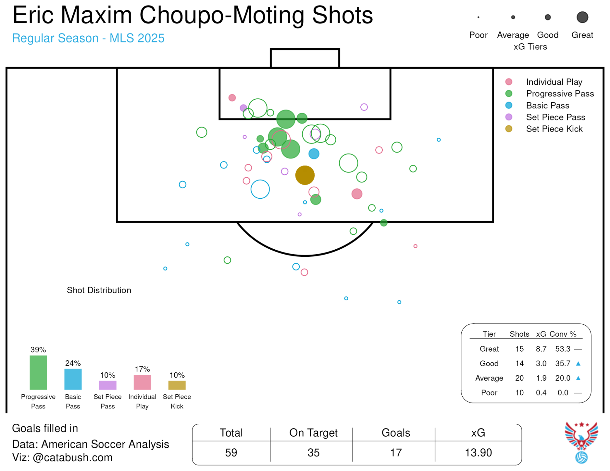 Four shots and five progressive carries a game is great volume, but if he can lean into his passing somewhat more (particularly at the expense of some of the truly garbage dots in that shot map) it could really juice some of the other members of Portland’s attack.