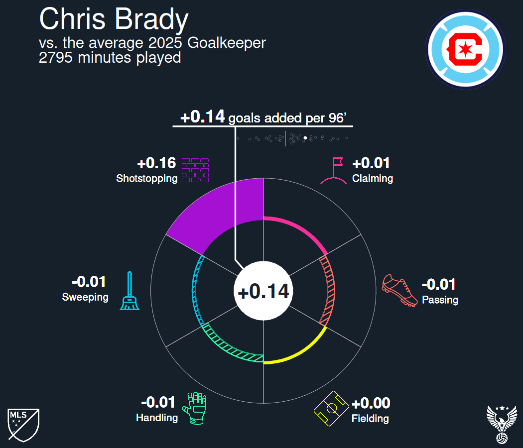 At least some of Chicago’s defensive overperformance can be attributed to goalkeeper Chris Brady and his best shotstopping season so far.