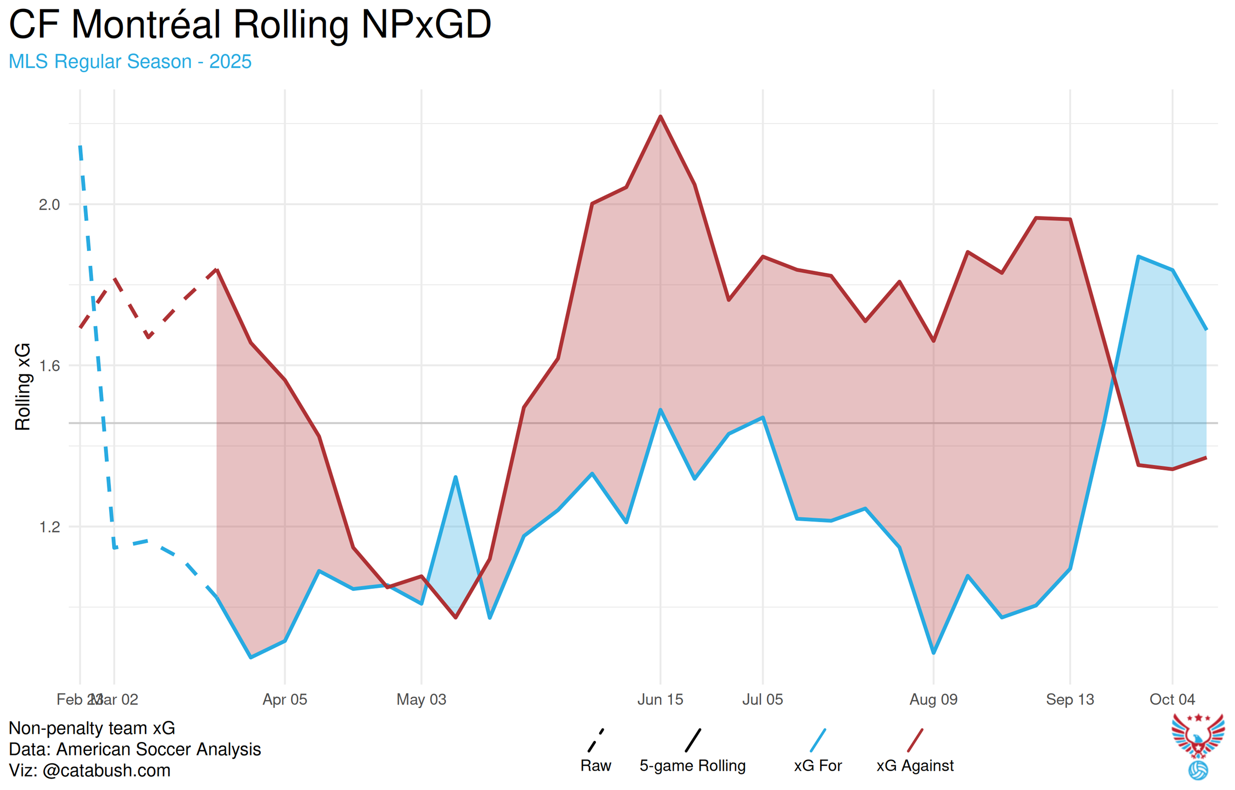 In many respects the team backslid from 2024. Despite marginal gains in possession and field tilt, the team struggled to create chances from their attacking positions. That especially hurt after all the money that had gone into building the offense. Loss of production from the fullbacks was a killer. Pedro Amador and Brooks Lennon lost their ability to fashion vital chances in the attack, but kept all the defensive weaknesses.