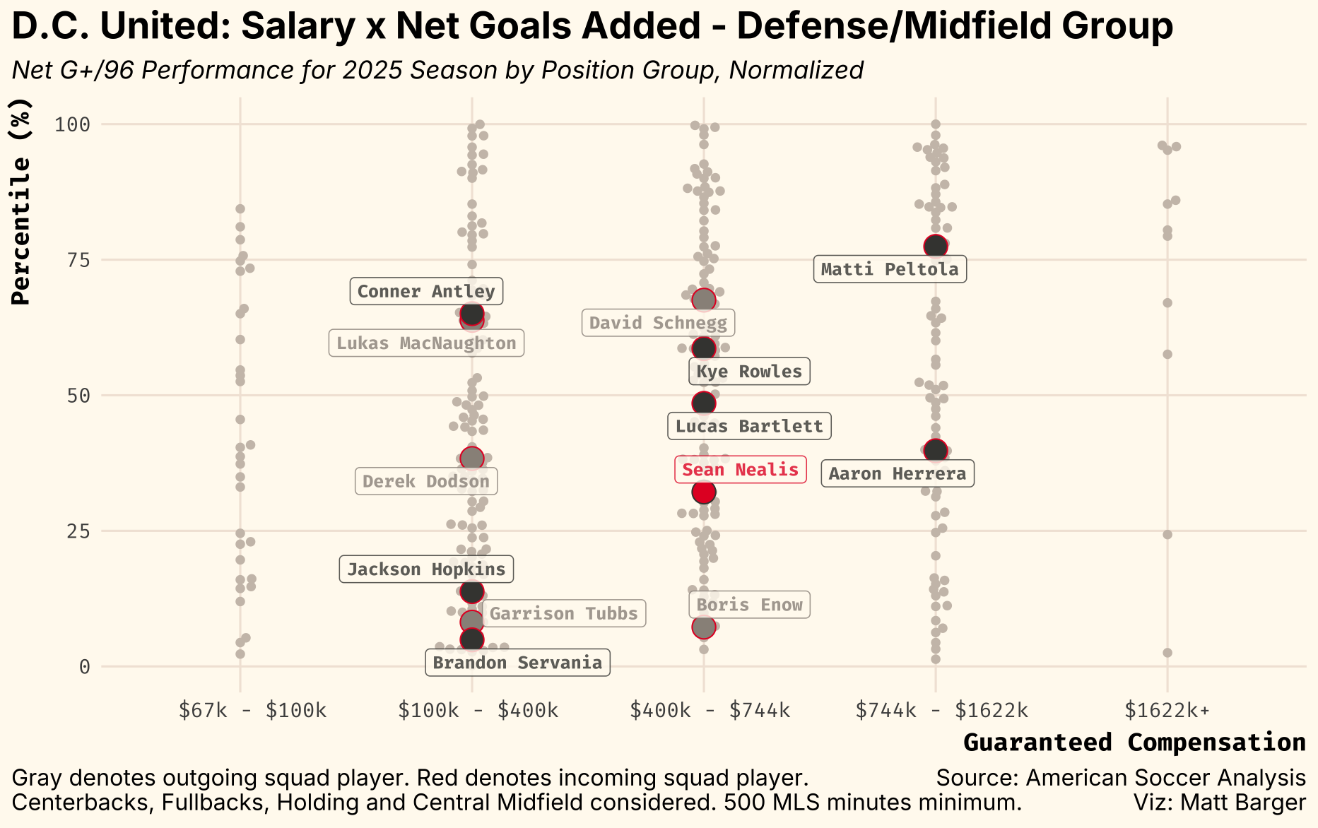 The majority of effective attacks DC United faced last season came from the left side and the center. The right side remained relatively unscathed, as Aaron Herrera and Conner Antley were forced to stay back and help defend. This readout suggests that DC’s holding midfield and center-back pairing struggled to cover the space their advanced left back (the departed Schnegg) left behind. Starting center-backs Kye Rowles and Lucas Bartlett turned in average defensive goals-added metrics, suggesting they are not liabilities but clearly need help covering the space.