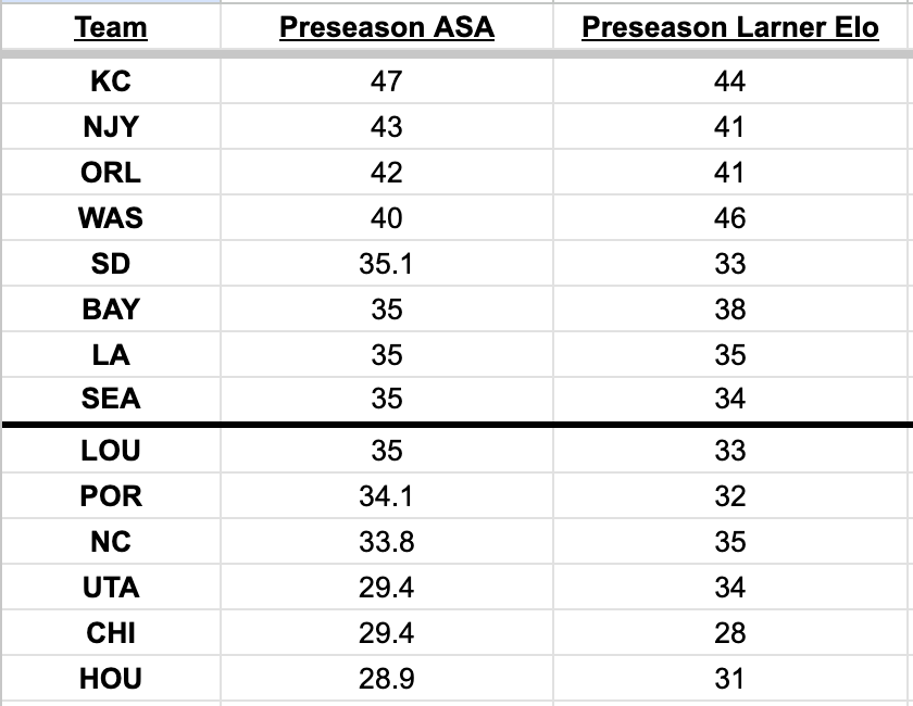 The pair has gone on to win the club one continental and two domestic trophies (as well as an international bronze medal that they’d maybe prefer to forget about) in their more than three year stint together. Gotham were pegged as the second or third best team in the regular season by some of the publicly available models heading into 2025. They were not that. Behind this gilded exterior of trophies lies the fact that even in this best ever era for the club, they should have been better.